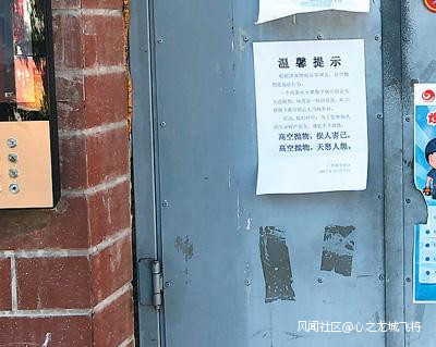 圖為北京市朝陽區某小區在樓門上張貼的關於禁止高空拋物的安全提示。本報記者 張一琪攝