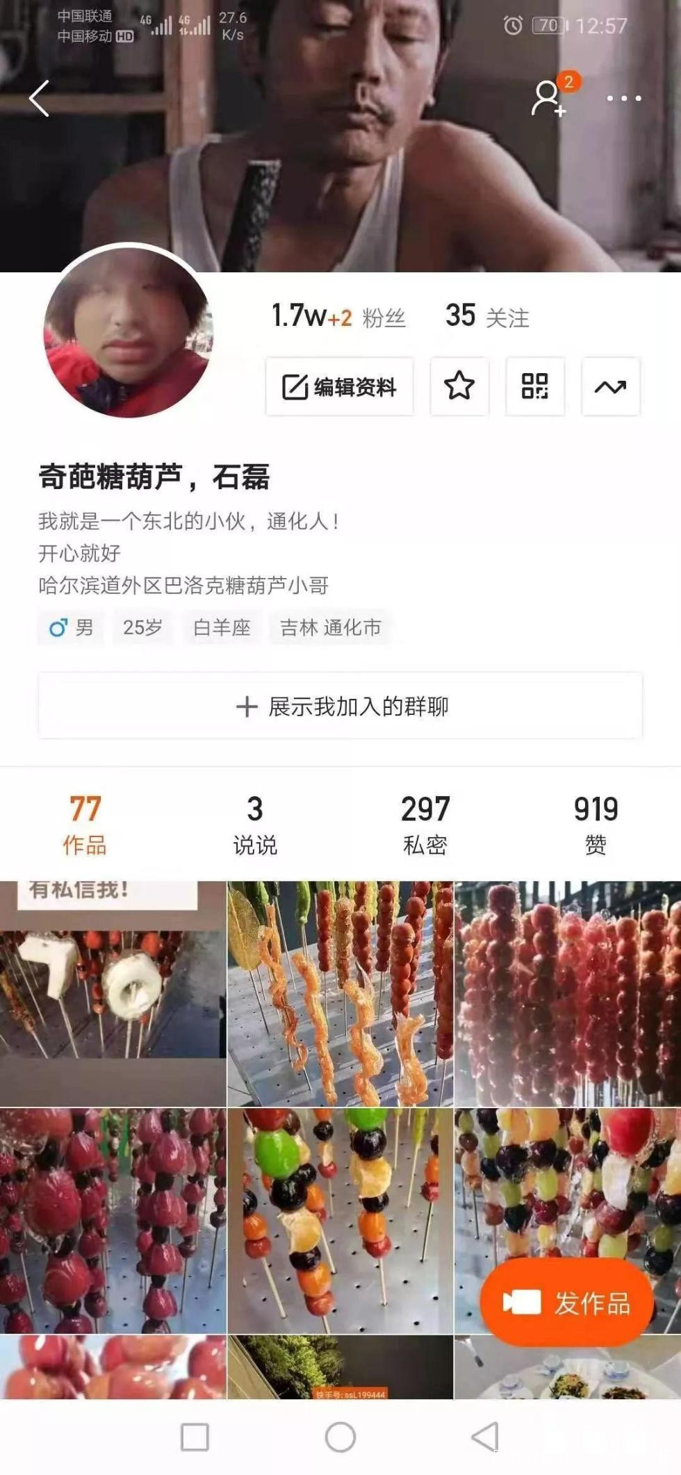 賣糖葫蘆很辛苦,冬天在外面一站站一天。賣糖葫蘆無聊時,石磊就刷刷短視頻,發些“暗黑糖葫蘆”的視頻,讓自己開心一下,讓粉絲們也開心開心。現在,他已有1.7萬的粉絲了。