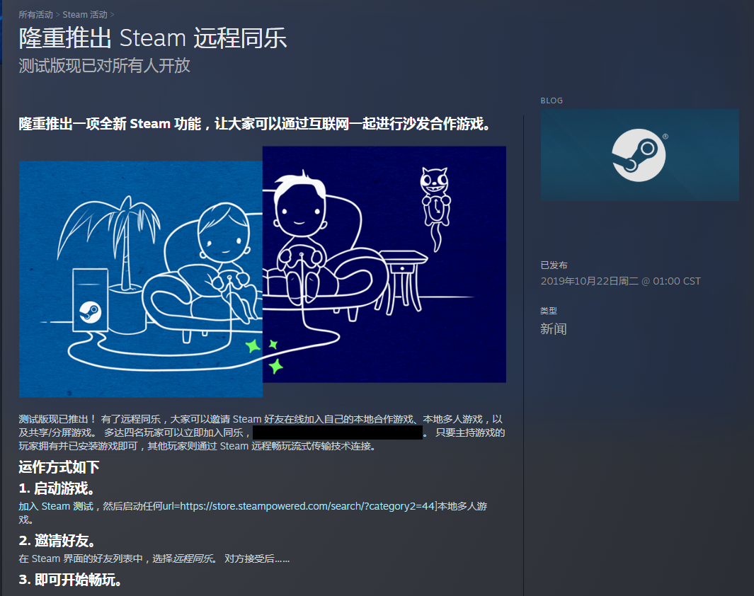和你的朋友遠程同樂!Steam “遠程同樂”功能開放測試_風聞