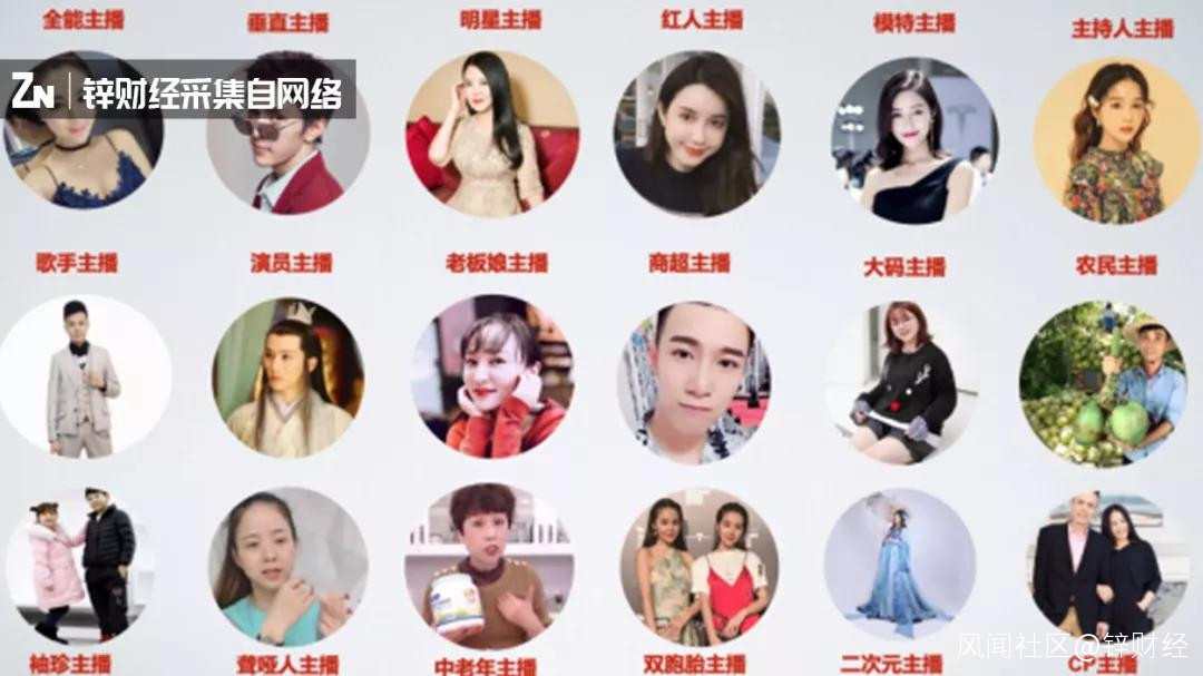 各種主播類型,圖片來源於淘寶直播