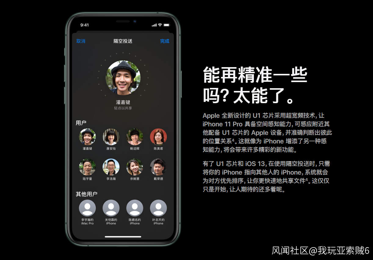 iPhone 11 系列新加入的 U1 芯片是實現定向 AirDrop 的基礎,它可以識別用户將 iPhone 指向需要共享文件的設備相關的位置。在多個設備/多人 iPhone 的情況下,如果您想與某個人使用 AirDrop 共享文件,只需將 iPhone 指向他的 iPhone 就可以。