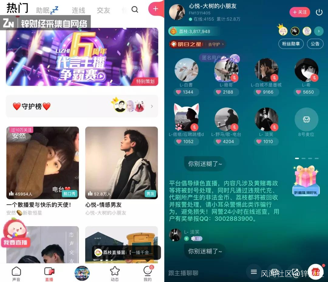 同時,荔枝還大膽加入社交元素,對社交互動類分區的運營投入明顯加重。比如荔枝派,是在一個公開房間裏輪流做主播的直播方式,鼓勵用户“搶麥”。
