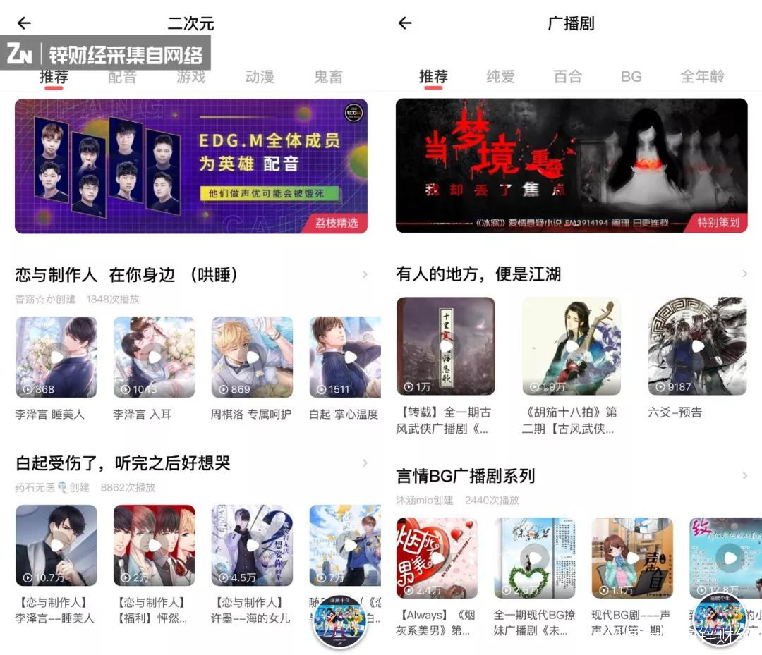 荔枝App上的“二次元”和“廣播劇”版塊