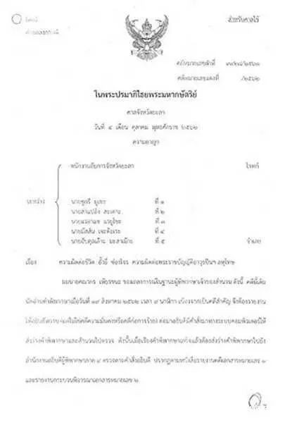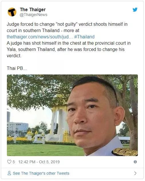 泰國一名法官開庭宣判5名嫌疑人無罪後,