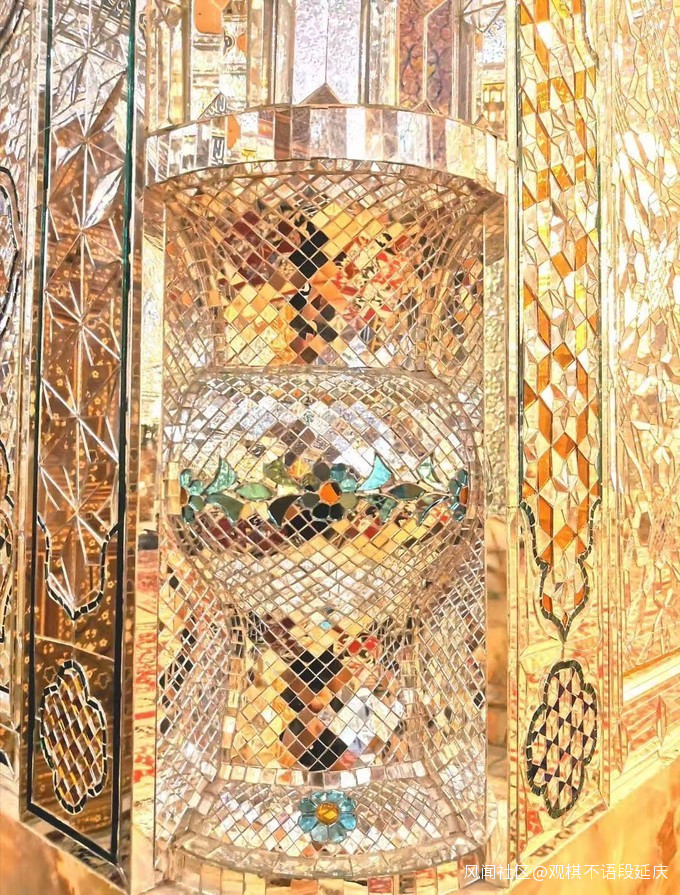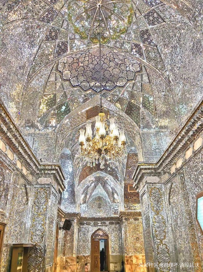 這幾百年歷史的吊燈罩,太有歷史感了。只是這邊一側的牆邊放了一輛摩托車,我用選景的方法將車排除在鏡框之外,並將這個方法分享給伊朗大嬸,大媽大嬸們如獲至寶,非常感謝我這個“秦”( 中國人)
