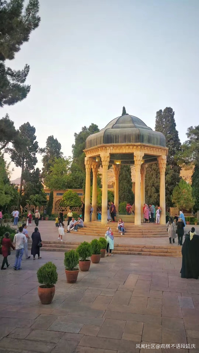 14世紀波斯詩人 哈菲茲之墓 。墓地位於設拉子北部的莫薩拉花園。中國人可能沒聽説過他,但哈菲茲是伊朗最受歡迎的詩人,相當於中國的李白。據説幾乎每個伊朗家庭都會有兩本書,一本是古蘭經,另一本就他的詩集。