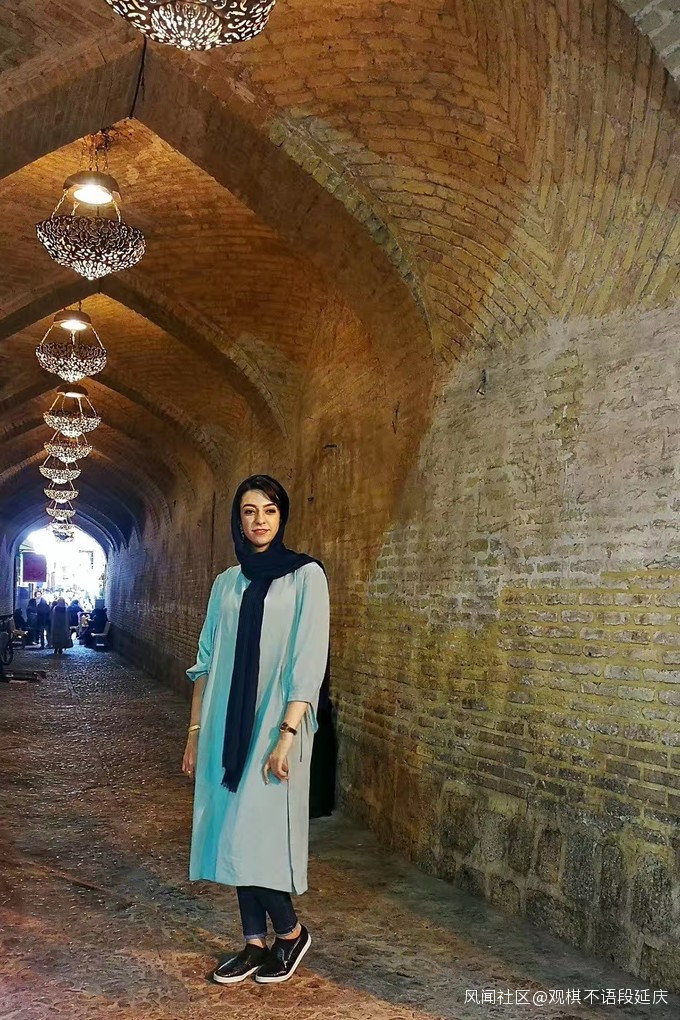 本來在照片中這位女士的右側,地上坐着一個老婦,像是一個乞討的(在伊朗行走13天,只遇到兩個乞討者,這便是其中之一),看見我們要拍照,急忙挪動到鏡頭之外,不説話,也沒有任何要錢的動作,感覺這位老婦雖然乞討,但真的很有尊嚴。