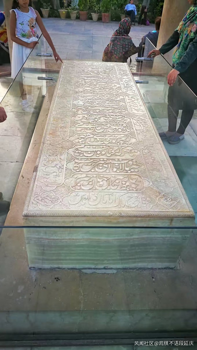 哈菲茲的玉棺,這個棺材用整塊的玉石雕琢而成,很多人都要輕撫上面的花紋以示對他的尊重。