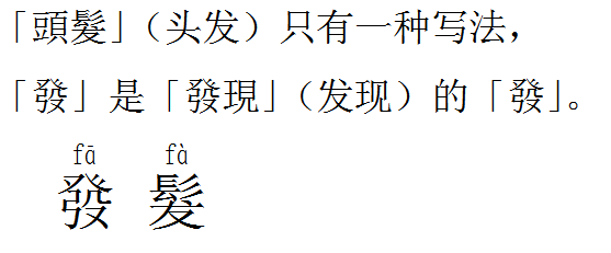 五、**街頭招牌中常見的繁體字錯誤是:美發。**如:“美容美發中心”。濫用繁體字不合用字規範;即使用繁體字,正確的寫法也應該是“美髪”。“發”,音fā ,是“出發”的“發”;“髪”,音fà,是“頭髪”的“髪”。兩字均簡化為“發”,但音、義並不相同。