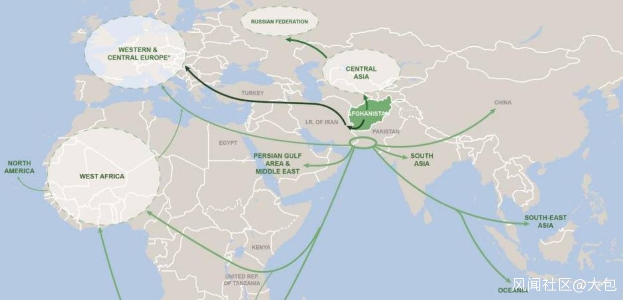 下圖為塔利班主動開闢的非法鴉片貿易線路。
