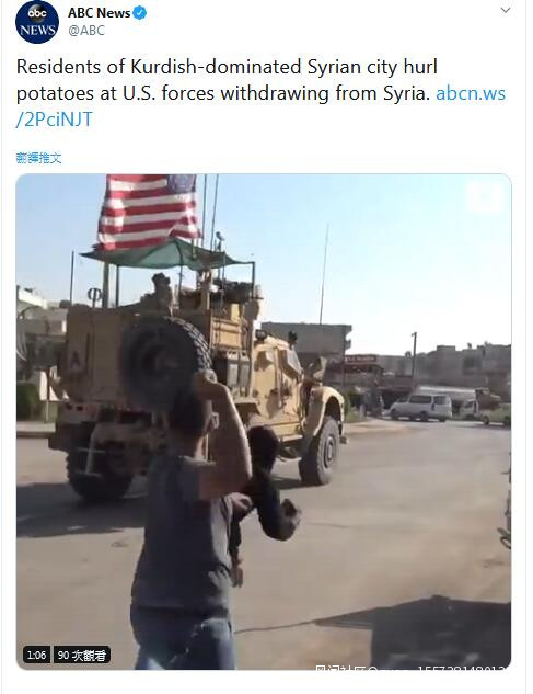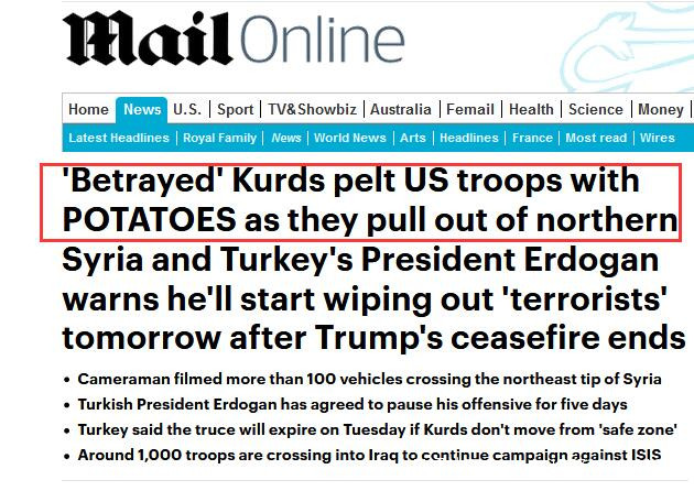 美軍撤離敍北 庫爾德人用土豆猛砸軍車:美國騙子!(轉自鳳凰網環球網)_風聞