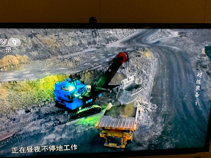 第一集中首先登場的是75立方米挖掘機。這個“大塊頭”是當今世界上剷鬥容量最大的礦用挖掘裝備。它的剷鬥容量是75立方米,挖掘一斗物料,就可以裝滿兩節火車廂,一年可以挖掉相當於三個北京鳥巢體育場體積的土石方哦。