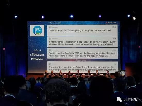 為什麼不讓中國參加美國“登月門户”建設?美國選擇合作伙伴的標準是什麼?會場大屏幕上刷新着聽眾關心的問題。