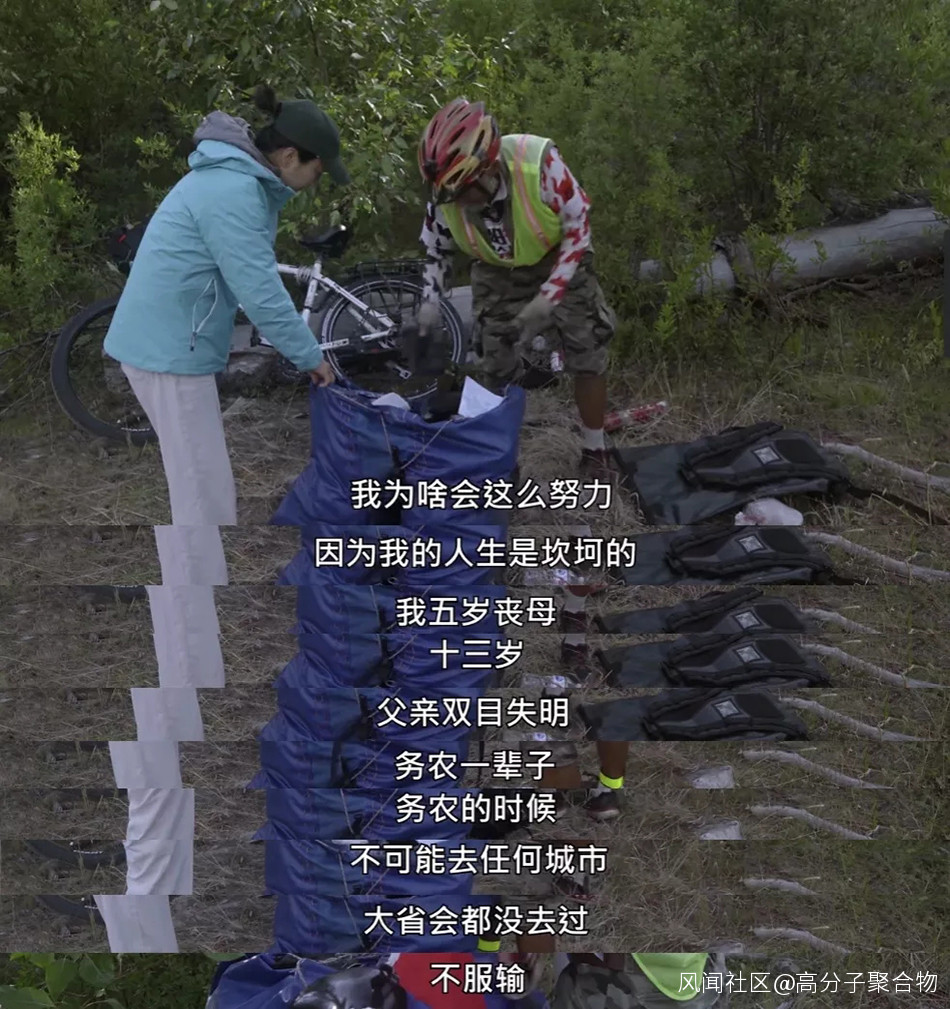 他對阿雅談到,他為什麼執意要進行他的騎行計劃,“我五歲喪母,十三歲父親雙目失明,上了五年學,務農一輩子。務農的時候,不可能去任何城市……我決心走完全國,走完世界,來展示我的理想、我的抱負,我不服輸”。