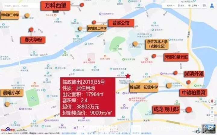 掛牌信息顯示,該地塊地處臨安老城區,佔地約20畝。