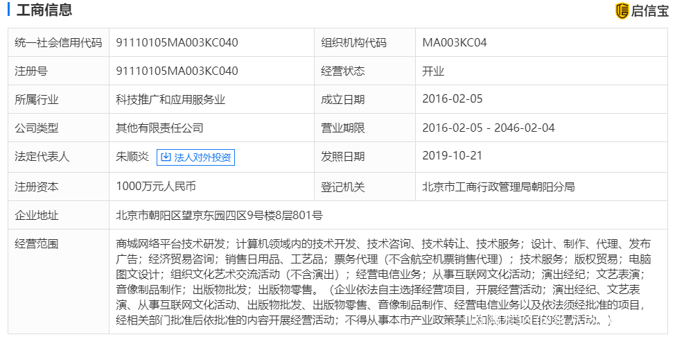啓信寶數據顯示,北京阿里巴巴音樂科技有限公司成立於2016年2月5日,註冊資本1000萬元人民幣,公司經營範圍包括商城網絡平台技術研發;計算機領域內的技術開發等。