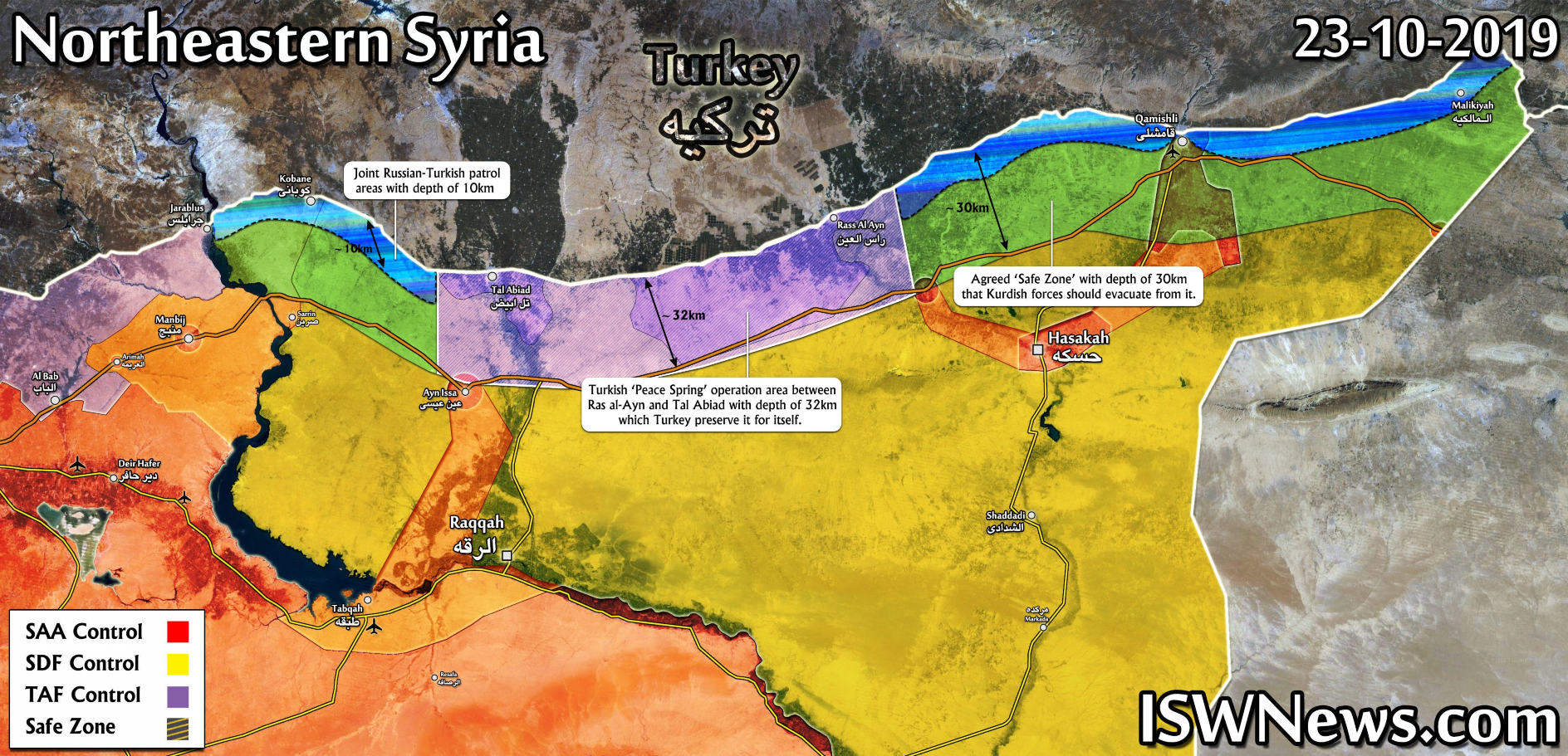 同時,土耳其在本輪進攻中並沒有賺到太多的領土。在俄土協議裏,土耳其及其僕從軍僅僅佔據了敍利亞中部近千平方公里的領土,東部邊境和西部邊境都有敍利亞阿拉伯陸軍駐守。