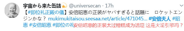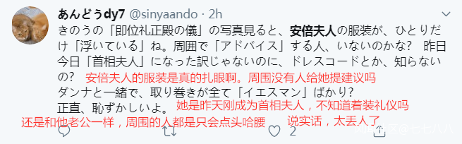 其實昨日的即位禮上,安倍的夫人最終成為眾矢之的,因為她的“奇裝異服”_風聞