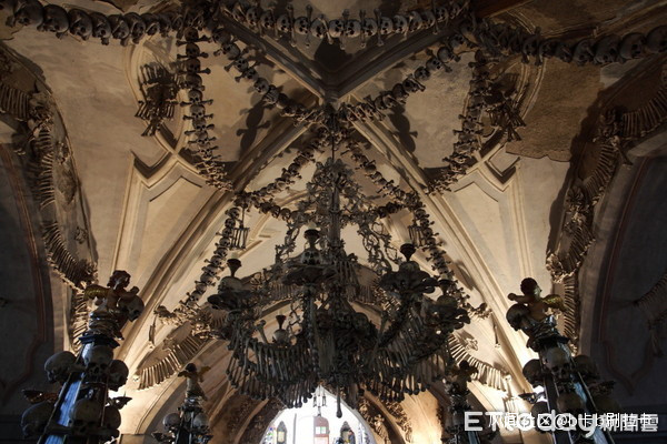 這些人骨多來自於14世紀黑死病和15世紀初波西米亞戰爭(Bohemian Wars)中的死者,原本他們都被埋在公墓,但在15世紀教堂建好後,這些骨骸都被移入教堂內,因此人骨教堂同時也是一座靈骨塔。其中教堂內最吸睛的就是懸掛在正中央、由人體所有骨頭拼成的大型吊燈,直徑長達2.5米,非常壯觀。