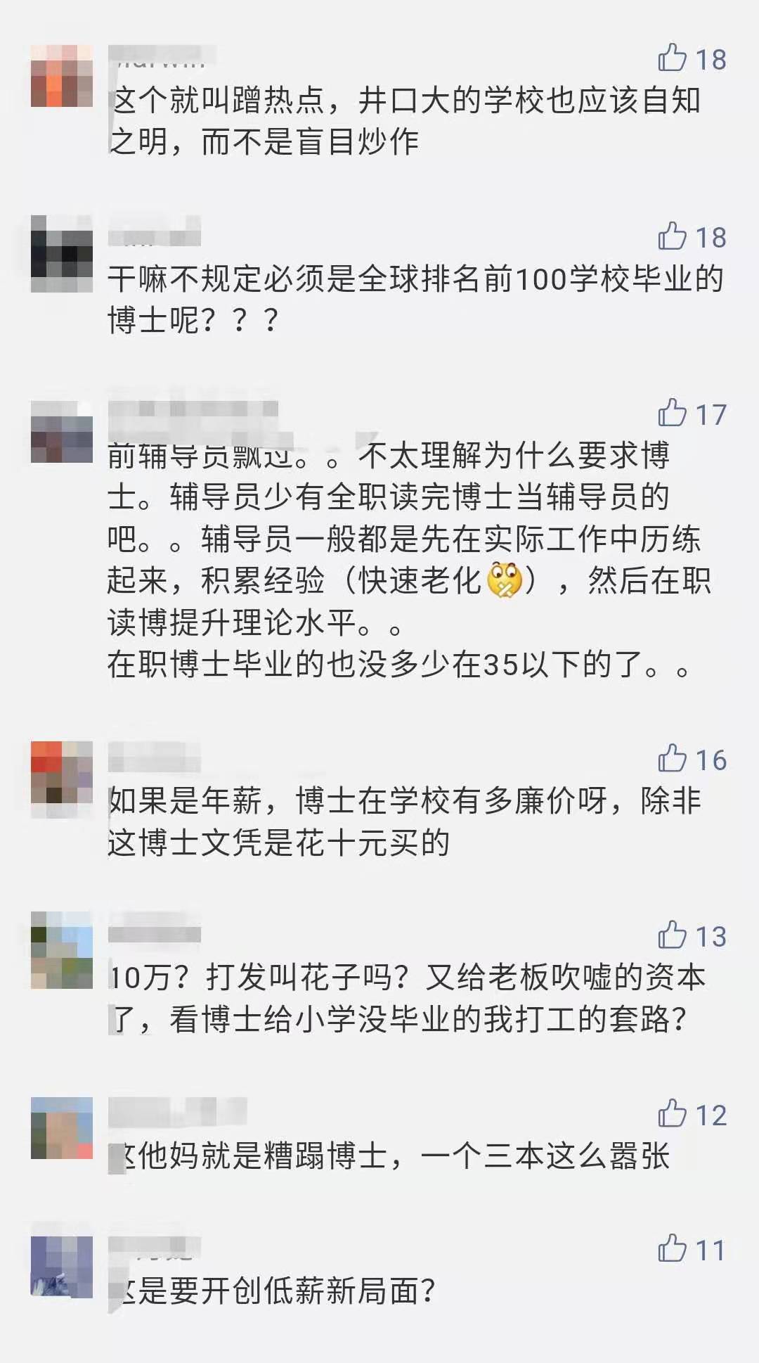 這引發了網友的集體炮轟,紛紛指責該校“蹭熱點”、“糟蹋博士”、“開創低薪新局面”。