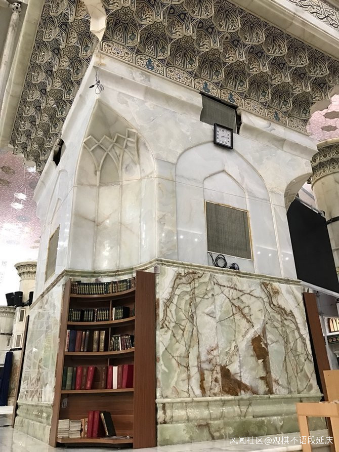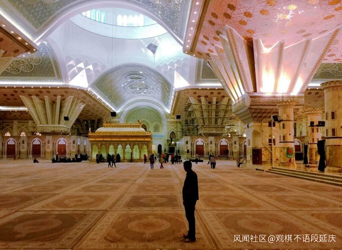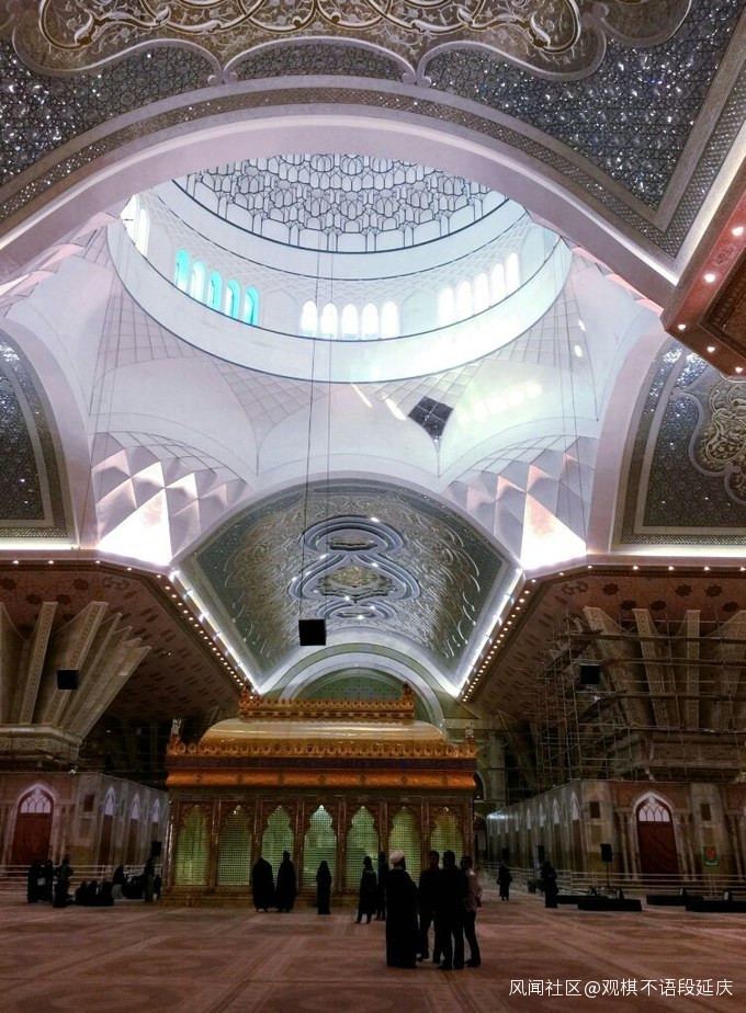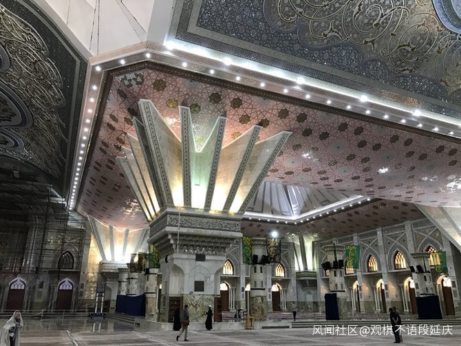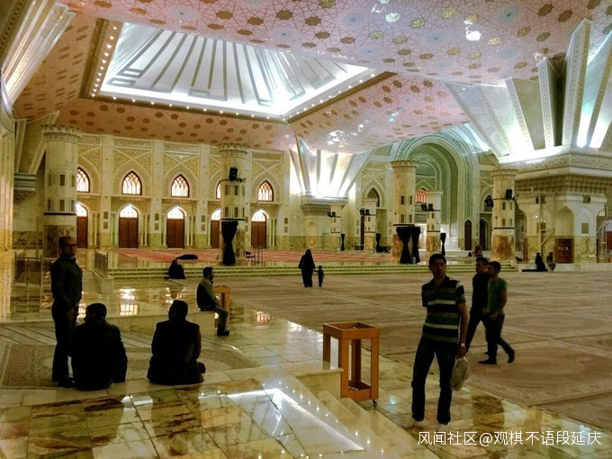 走到後面的建築,才是霍梅尼墓,進門要安檢,安保的軍警把我的充電寶挑了出來,由他們暫時來保管。走進大廳,哇,很大的氣勢。如此巨大的大廳,地面、柱子,全部由玉石裝飾鋪成。