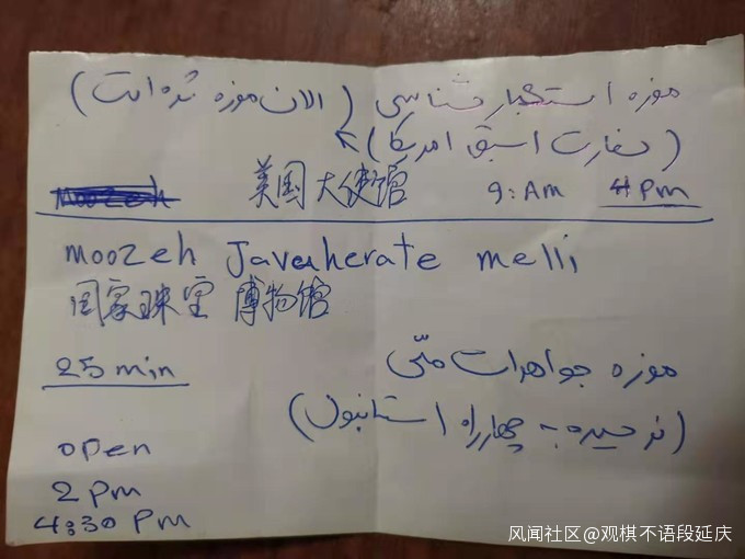 手機被偷,沒有了地圖和翻譯,出行大大的不方便,幸好民宿的老闆有谷歌翻譯,我讓他在地圖上給我找到景點的位置,我大致清楚了路線,旅館位置不錯,幾個景點步行20分鐘就都可以到達。再讓他用英文和波斯文寫上景點的名稱,方便我詢問路人。