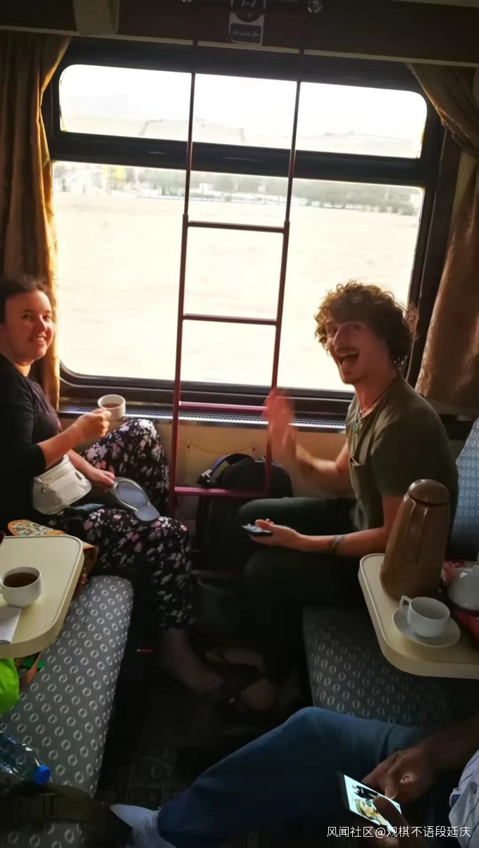 同車廂的一個法國人、一個澳大利亞人,兩位還在粉紅清真寺碰上過,世界很大,又很小!