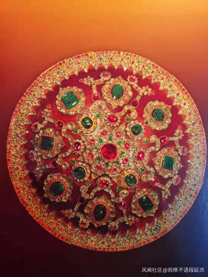 直徑70公分左右的盾牌,上面鑲滿了紅寶石、祖母綠和鑽石,看看這些寶石和盾牌的比例,就知道他們有多大。