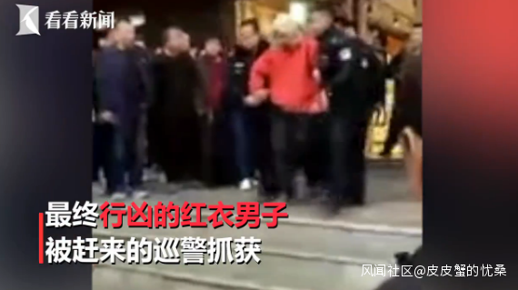 “我上警車把甩棍拿出來,把他的刀打掉,中間被他劃了一刀。”據救人執法人員郭首晨介紹,事發時幾輛出租車停在了路邊,熱心司機紛紛下車幫忙。紅衣男子試圖騎車逃離現場,一位熱心羣眾一腳踹向摩托車,將男子攔下。郭首晨和熱心羣眾又協力將紅衣男子堵到了附近的一家書店裏,最終,行兇的紅衣男子被趕來的巡警抓獲。