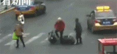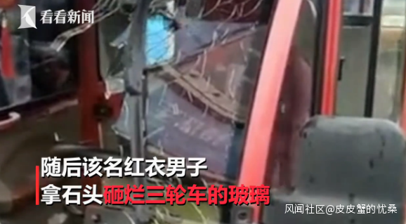 事故發生後,雙方吵了幾句。紅衣男子用隨身攜帶的石頭砸壞了電動車的玻璃,隨後扶起摩托車想要離開。電動車駕駛員立即追了上去,拉着摩托車駕駛員不讓他離開,就在這時意外發生了……