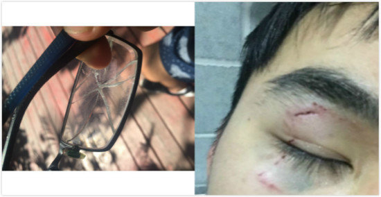 阿劍受傷的右眼及炸裂的眼鏡(當事人供圖)