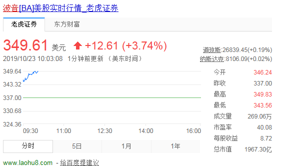 財報發佈後,波音股價美股盤前快速下跌,一度跌超3%。目前,股價由跌轉漲,波音盤前股價漲為349.61美元,漲幅為3.74%。美股研究社猜測波音股價實現上漲可能最大的原因還是在於波音的737MAX將會返飛。