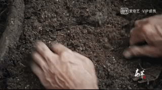 老漢小心翼翼刨開土層,不破壞松樹的根莖。