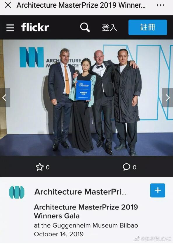 知乎上作者為遊旭東的文章這樣扒出事情的蛛絲馬跡。照片裏的獎項是Architecture MasterPrize (AMP),翻譯過來也就是建築大師獎,是一個叫Hossein Farmani 的伊朗人在美國創立的,實際上和美國也沒啥關係。今年的大獎得主是來自中國的gad· line+ studio。讓大家不解的是,參加2019年的頒獎儀式,但江一燕手裏拿的卻是2018年的獎。