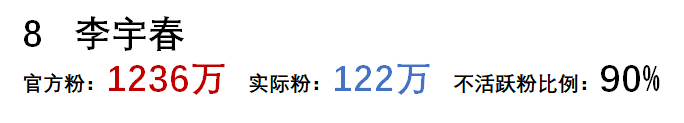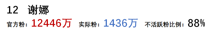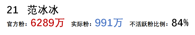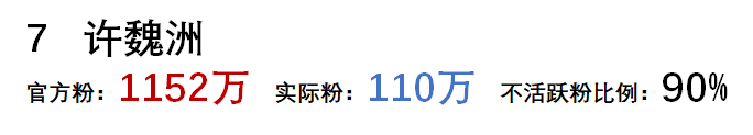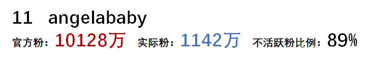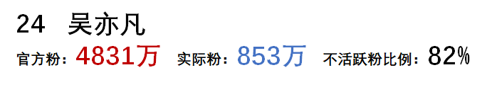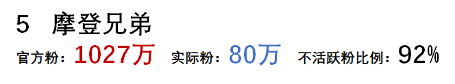 從以上可以看到,微博粉絲的水分真的很大,大部分明星殭屍粉的比例都在80%以上。