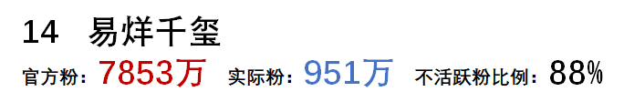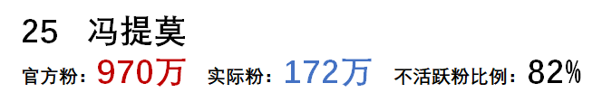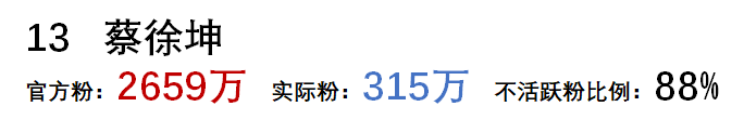 把 不活躍粉絲(殭屍粉)的比例 作為指標,比例越高的排名越高,猜猜第一名是誰: