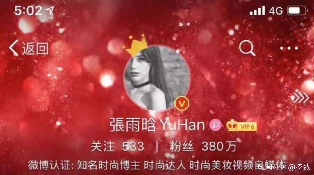 事件發生後,自媒體紛紛吃瓜,其中有一個自媒體吃瓜吃的非常有水平,他用了微博app的一個自帶工具,成功識別到事件中這位大V張雨晗的真實粉絲數。
