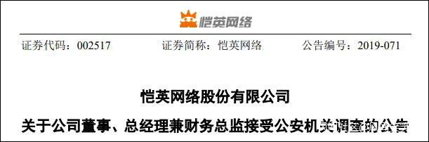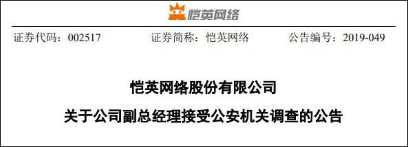 除王悦外,愷英網絡的副總經理馮顯超,司董事、總經理兼財務總監陳永聰也接連被公安機關調查並控制。