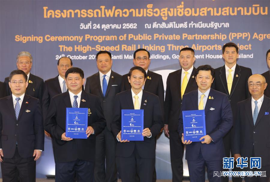 新華社曼谷10月24日電(記者 汪瑾 林曉佩)當地時間24日下午,在泰國總理巴育的見證下,泰國東部經濟走廊(EEC)連接曼谷廊曼機場、素萬那普機場和羅勇府烏塔堡機場的高鐵項目在泰國總理府舉行協議簽約儀式。