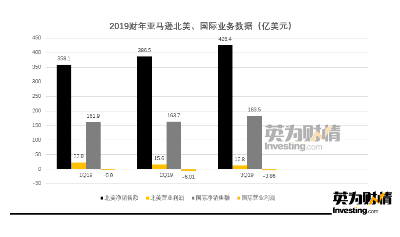 (亞馬遜2019財年北美、國際業務數據來自公司財報數據,製圖:英為財情Investing.com)上一季度開始,亞馬遜宣佈加大對於“當日送達”的投入,亞馬遜的創始人貝佐斯在電話會議中表示,對於“一日送達”的投入非常必要,對客户來説是一項正確的長期投資。亞馬遜預計四季度,對於“一日送達”將再投入15億美元,以擴大倉庫規模和產品選擇。