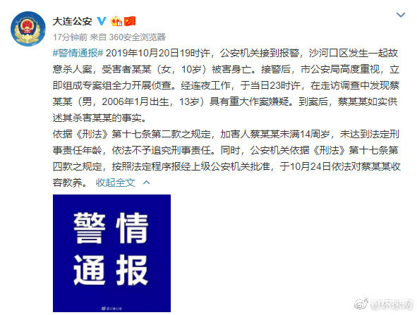 最近,大連13歲男孩殺害10歲女孩,因未滿14週歲不擔刑責,被判被收容教養的事情,再次引發了大家對於“14週歲以下依法不擔刑責”合理性的討論。