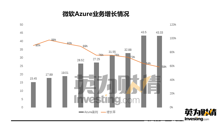 (微軟歷史行情走勢圖,來自英為財情Investing.com)Azure增長持續放緩,但利潤率提升