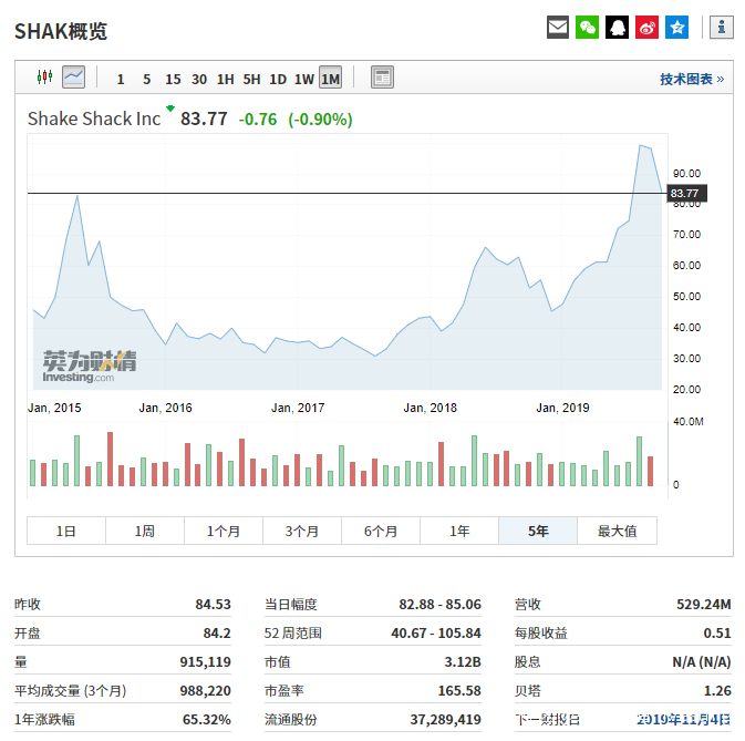 Shake Shack股價走勢,來源:英為財情Investing.comShake Shack****股價為何大漲?
