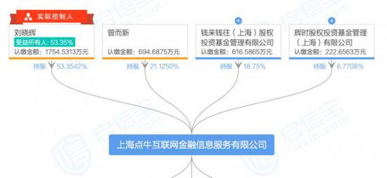 一位點牛金融投資者告訴21世紀經濟報道記者:“細讀值得玩味,沒有劉曉輝的名字。”啓信寶顯示,上海點牛互聯網金融信息服務有限公司法定代表人是曾而新,也是點牛金融董事長,持股21%左右;點牛金融監事劉曉輝持股約53%。