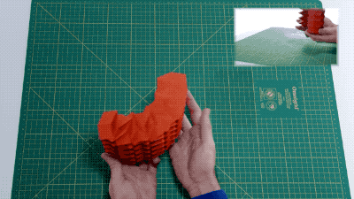 其實,我們之前介紹過,Biruta Kresling 本人能一下徒手一扭(torsional loading),讓紙質圓柱體長出克雷斯林圖案。(點我看詳細)