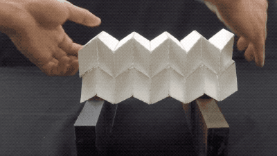 華盛頓大學的研究者演示,這種剛體摺紙多面體有很好的彎曲剛度——