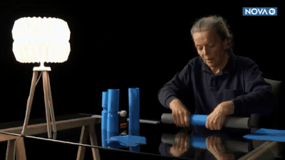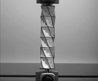 其實,我們之前介紹過,Biruta Kresling 本人能一下徒手一扭(torsional loading),讓紙質圓柱體長出克雷斯林圖案。(點我看詳細)