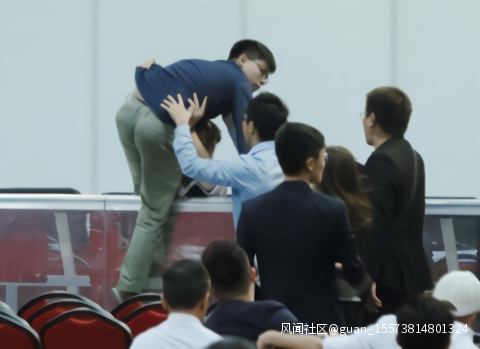 **黃之鋒甚至一度爬上護欄欲衝擊主席台,被保安攔下。**主持人要求保安維持秩序並將黃之鋒等人逐出會場,但一眾人隨後又重返會場展示政治標語。馮驊多次作出警告無效,最終宣佈簡介會中止。