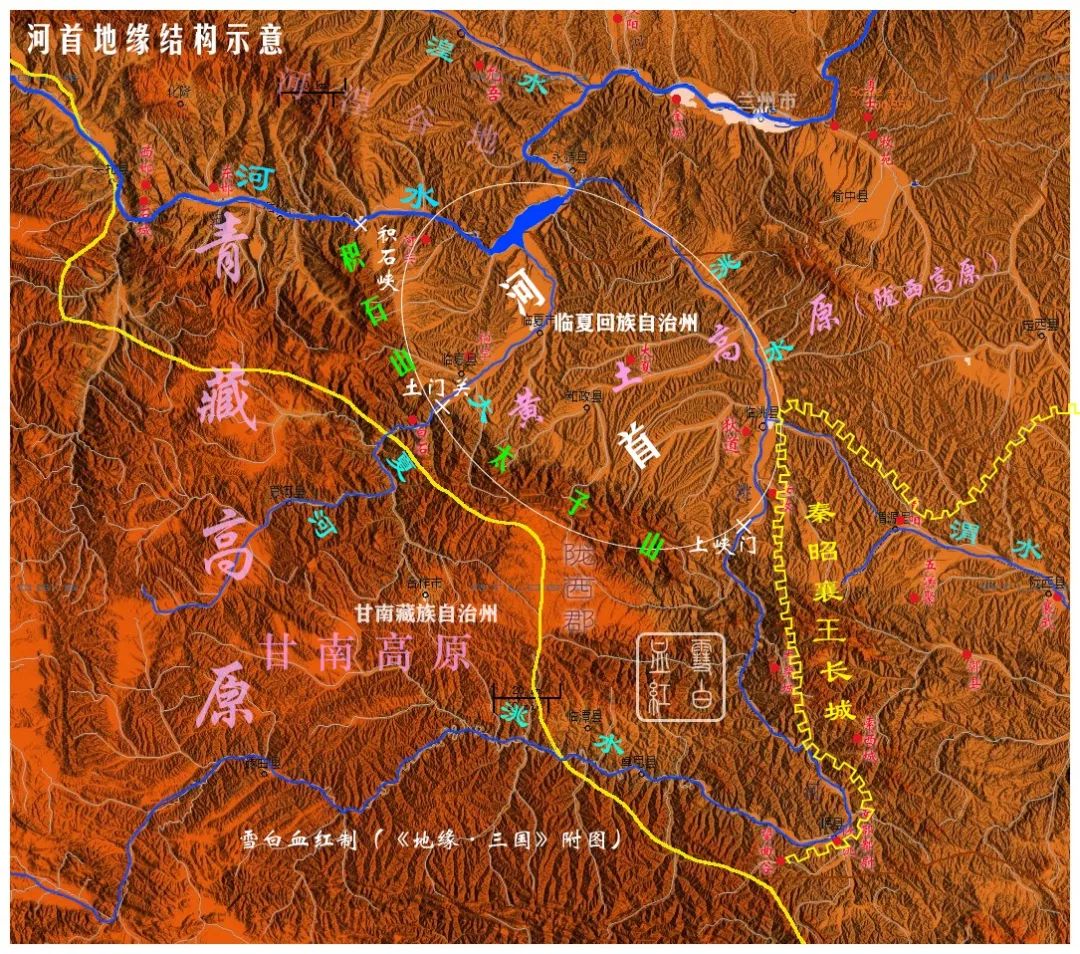 居無定所的遊牧民族,穿越荒漠、半荒漠地區進入西套平原並不存在特別的障礙,但對於步步為營,戰略上處於防禦狀態的中原王朝來説,想要控制這個被幹旱包裹的綠洲,就要多費些心思了。從地理格局來看,最起碼要完全的控制隴右、隴東兩大高原之後,才有可能打通穩定通往西套平原的戰略通道。這當中尤為重要的是對隴右高原的完整控制。賀蘭山的走勢決定了只擁有隴東高原,並無法對西套平原建立牢固的控制線。