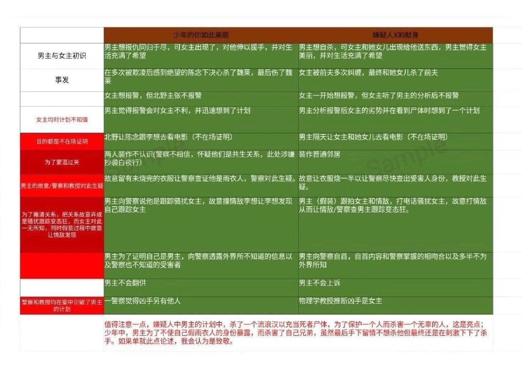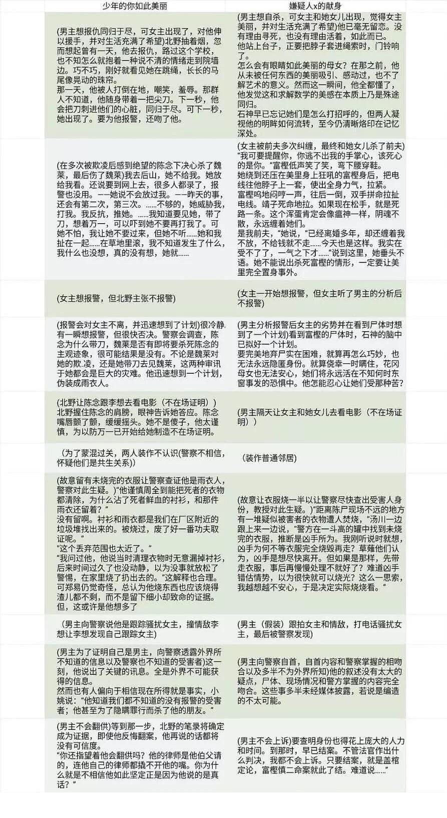 而《少年的你》其小説原著《少年的你,如此美麗》也不例外,當時就有網友製作了調色板進行比對,質疑小説抄襲了《白夜行》《忍冬》《嫌疑人X的獻身》等作品。其中,東野圭吾作品中的一些經典語句更是直接被作者騰挪過來: